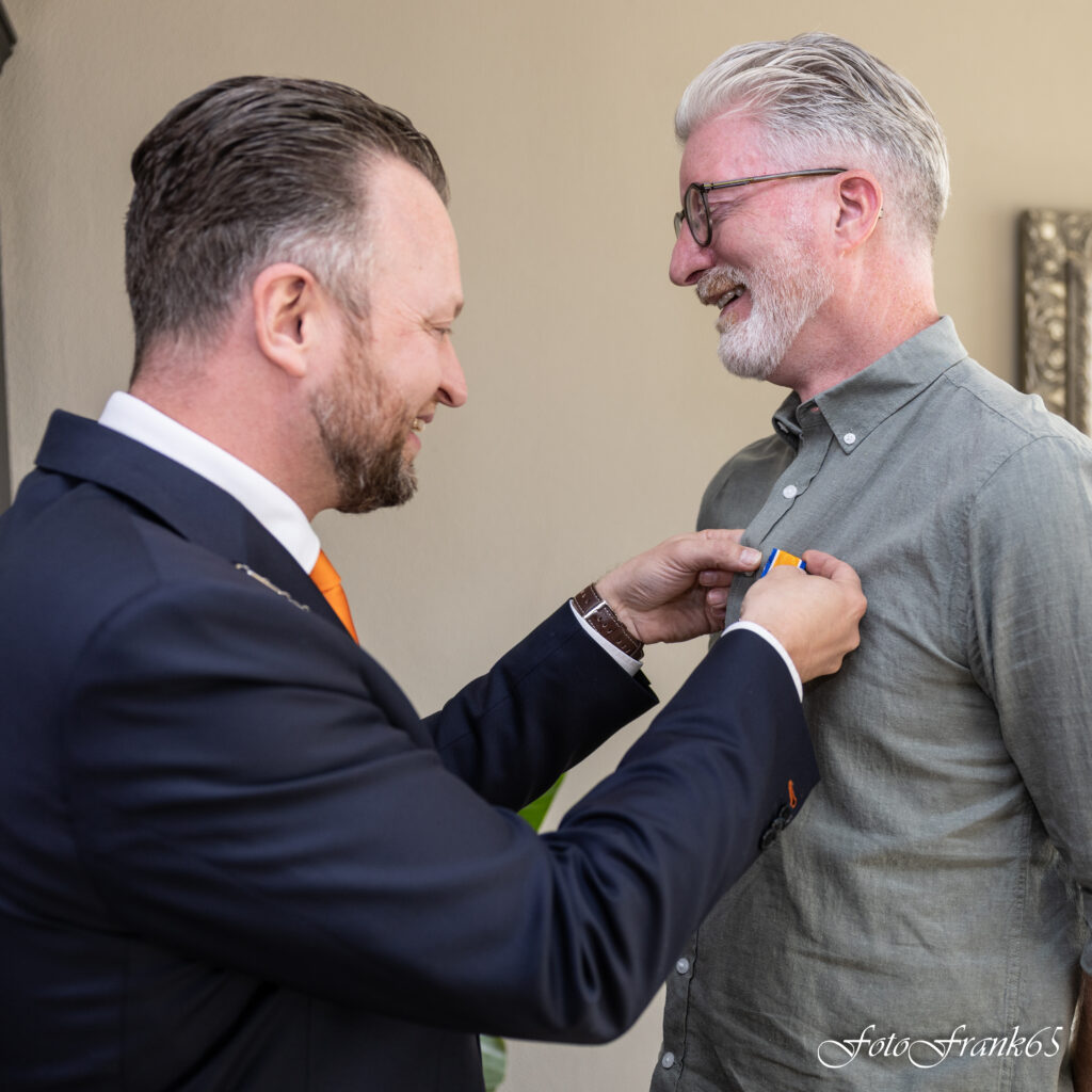 Gistere is ozze veurzitter Marcel Aspers door burgemeister Martijn Derks gedecoreerd as lid in de Orde van Oranje Nassau. Al